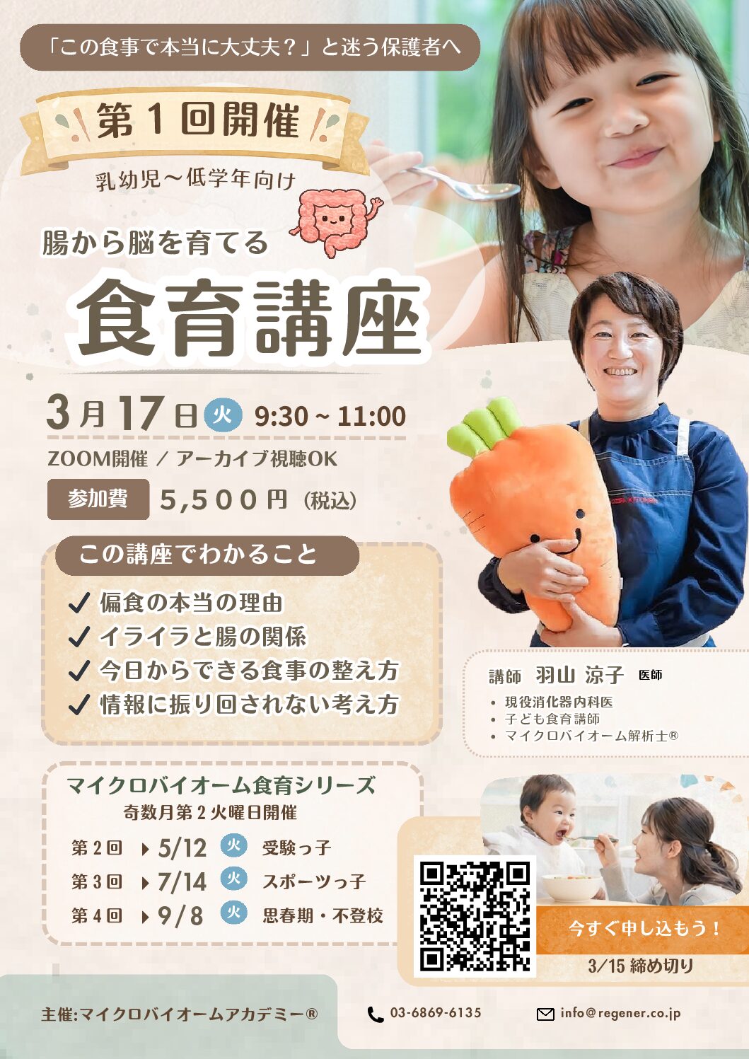 腸内環境について 【ZOOM開催(3/17)】Drが教える腸から脳を育てる食育講座